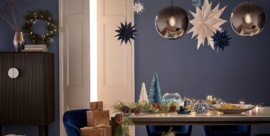 A theme we are seeing running throughout many retailers this holiday season is ‘sparkling blush’. This theme incorporates soft pink tones mixed with glittering rose golds and brass accents. Freedom and Domayne have included these colours throughout all their Christmas decorations and have trees adorned in these beautiful tones in store. Rose gold, brass and classic gold are the perfect backdrop for displaying new and old Christmas ornaments, so stock up on a few baubles to enhance your tree. Sparkling blush is the perfect theme to decorate your Christmas dining table in this year too. Think textured gold placements, moody blush toned dinnerware with sparkling bonbons and glittering candles. Twinkling fairy lights are the perfect accessory to this theme, so add them to just about every surface you can to creative a festive atmosphere throughout your home. You can pick up battery powered fairy lights from a variety of retailers, which provide an easy way of decorating your dining table, mantle or entertainment unit in. To finish off the blush theme we absolutely love these dusty pink paper stars from Freedom that you can hang down your hallway, above your entry or on your staircase.